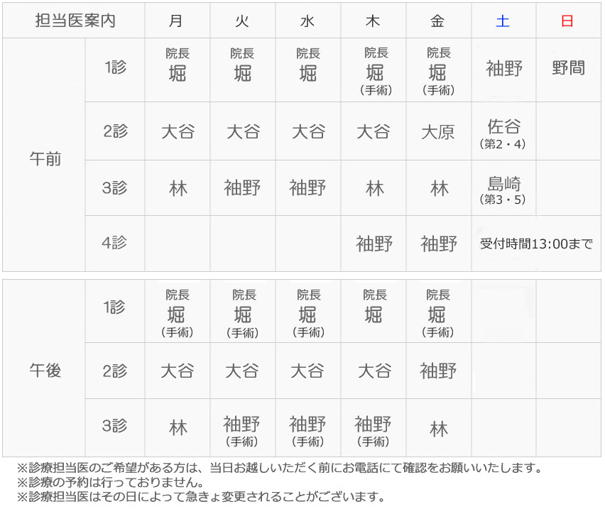 ご希望の担当医の緊急外来・緊急手術などの都合により、診察時にお待ちいただく場合がございます。ご理解とご協力を何卒よろしくお願い申し上げます。